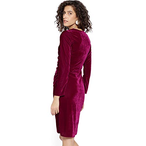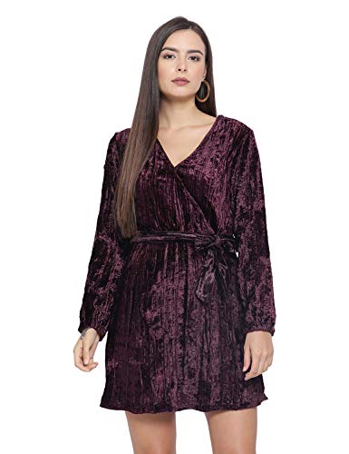 2. PoshBery Women Magenta Velvet Finish Wrap Dress
