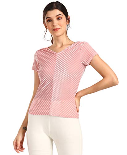 1. HEY V Neck Self Stripe Velvet Top