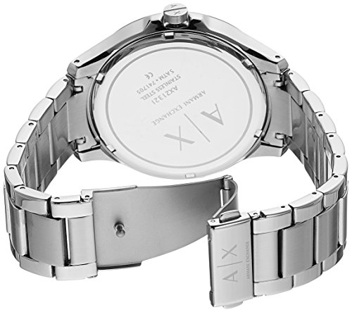 An absolute stunner! This Armani Exchange watch is a stainless-steel silver band watch with blue dial.